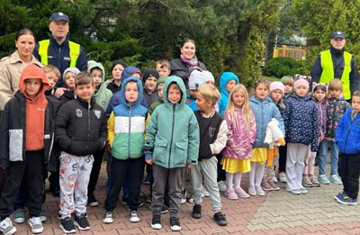 Spotkanie rozpoczęło się od rozmowy z dziećmi o zasadach bezpiecznego poruszania się po drogach. Szczególną uwagę