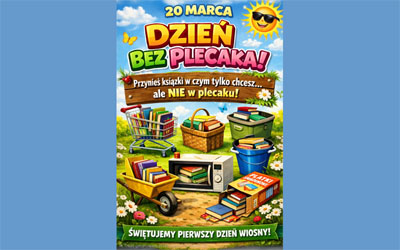 PLECAKA”. Zachęcamy uczniów, aby zamiast tradycyjnych plecaków przynieśli swoje książki i przybory w kreatywnych,